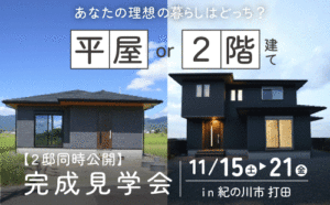 【完成見学会】11/15(土)~11/21(金) 紀の川市 打田|平屋・2階建てを2邸同時公開!理想の暮らしを比べよう!
