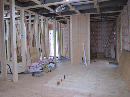 2週間ほど経過したでしょうか。中は壁も天井もすっかりできあがってきていました。ひょっとして大工工事完了かな?