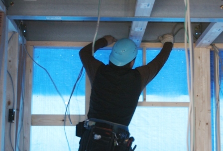 電気工事も進行中でしたよ。壁が出来てしまう前に電気やLANなどの配線を通しておく必要があるんですね。